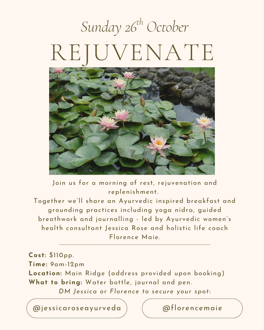 Store REJUVENATE $110.00 Abhyanga Gift Voucher $180.00 Ayurvedic Postpartum Recipes by Jessica Rose $22.00